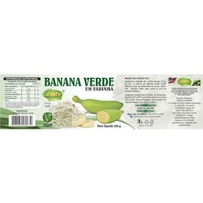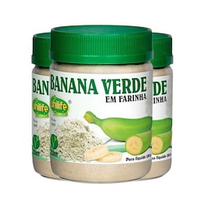 Kit 3 farinha de banana verde 130g unilife Em sua composição natural encontra-se o amido resistente, fibras dietéticas e baixo teor de carboidratos. modo de ingestão: sugere-se a ingestão de 1 colher de sopa 10g ao dia. A farinha de banana verde unilife vitamins pode ser adicionada em sucos, vitaminas, iogurtes, frutas, pães, bolos ou junto de qualquer refeição. ingredientes: farinha de banana verde. produto vegano não contém glúten - livre de lactose produto autorizado para comercialização em todo o território nacional através do anexo i da rdc 27/2010, em conformidade com a rdc 23/2000 da anvisa. Afe do ms 6.02234-1 informação nutricional porção de 10 g 1 colher de sopa quantidade por porção % vd valor energético 33 kcal=138 kj 2 carboidratos 7,5 g 3 proteínas 0,5 g 1 gorduras totais 0,1 g 0 gorduras saturadas 0 g 0 gorduras trans 0 g Fibra alimentar 1,2 g 5 sódio 0 mg 0 % valores diários de referência com base em uma dieta de 2.000 kcal ou 8.400 kj. Seus valores diários podem ser maiores ou menores, dependendo de suas necessidades energéticas. valor diário não estabelecido. Marca: Não Informado