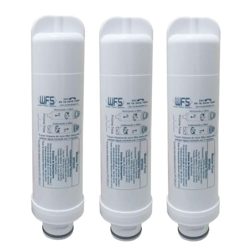 Kit com 3 filtros refil compatíveis com purificadores de água Electrolux modelos PE10, PE10B e PE10X. Remove cloro, elimina sabores, retém partículas de sujeira, barro e ferrugem, eleva o pH e elimina 96% de bactérias e micróbios. Eficiência Classe III na retenção de partículas, Aprovado na redução de cloro livre e Eficácia Anti Microbiana. Produto em conformidade com a norma ABNT NBT 16098:2012.Tipo