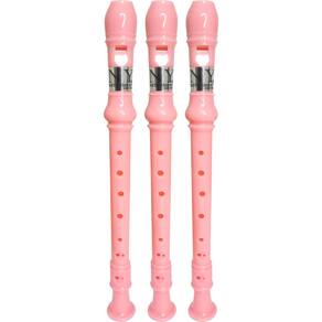 Kit 3 Flautas Doce Germânica Rosa Claro FL 20G New York