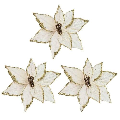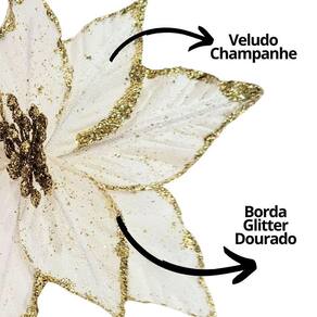 Com essa flor de Natal em veludo champanhe com glitter dourado, sua decoração ficará ainda mais sofisticada, iluminando o ambiente com um charme delicado e festivo.