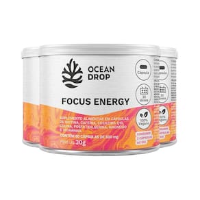 Kit 3 Focus Energy Ocean Drop Vegano 60 Cápsulas O Focus Energy foi desenvolvido para melhorar o desempenho físico e mental, repor importantes vitaminas e nutrientes, e reduzir o e cansaço. Ele contribui para a concentração, disposição, bem-estar e energia, tanto física quanto mental. Modo de consumo: - Sugere-se a ingestão de 2 cápsulas ao dia. Produto com duração de 1 mês. Composição: - Bitartarato de colina - Bisglicinato de magnésio - Cafeína - Coenzima Q10 - Cloridrato de piridoxina vitamina B6 - D-biotina - Cianocobalamina vitamina B12 - Estabilizante celulose microcristalina - Antiumectante dióxido de silício - Cápsula vegetal: Hidroxipropilmetilcelulose, carragenina e acetato de potássio - NÃO CONTÉM GLÚTEN. Indicação: - Cognição - Memória - Performance mental Contraindicação: - Este produto é indicado para o grupo populacional acima de 19 anos. - Não deve ser consumido por gestantes, lactantes e crianças. - Este produto não é um . - Também não é indicado para alérgicos ou sensíveis à cafeína, hipertensos, cardíacos, com úlceras ou hiperacidez estomacal. Marca: Não Informado