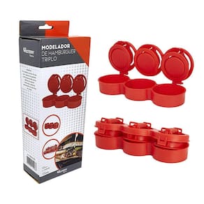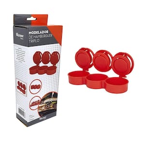 Forma de hambúrguer para prepará-los recheados com queijo, cogumelos, alho, cebola e qualquer ingrediente que você quiser. Super prático e rápido, podendo preparar três hambúrgueres de uma vez.Marca: WesternCaracterísticas: -material: PP. -cor: Vermelho. -capacidade de cada hambúrguer: 100ml. -medida do hambúrguer: 8 x 8 x 2,5cm. -modela até 3 hambúrgueres ao mesmo tempo. -lava louças: Sim.Conteúdo: -1 Modelador de hambúrguer triplo.Aplicação: ideal para preparar três hambúrgueres de uma vez com muita praticidade.Código: HAM03CONTEÚDO DA EMBALAGEM: 3 Forma Para Prensar Hambúrguer Modelado Em Casa Triplo Marca: Casa Digabi
