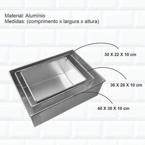 Forma retangular - 30x22x10 cm Forma retangular - 36x26x10 cm Forma retangular - 40x30x10 cm