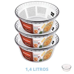 Itens inclusos: 3 Assadeiras de vidro Suflê 1,4 LitrosMarinex com as respectivas descrições acima