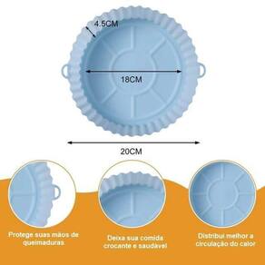 Kit 03 formas de silicone para airfryerNão perca mais tempo lavando sua airfryerA bandeja de silicone para airfryer definitivamente é um produto que vai facilitar sua vida na cozinha e deixar tudo mais limpinho.Fabricada em silicone atóxico e não pegajoso, possui uma enorme capacidade antiaderente, com ela você garante que manchas de óleo não fiquem mais impregnadas na sua fritadeira facilitando a limpeza e aumentando a vida útil da peça. Versátil, funcional podendo também ser usada no forno.Sua estrutura é projetada para circulação de ar aguentando até 220graus de temperatura. Preserva o sabor dos alimentos mantendo crocantes e gostososCaracterísticas:- Silicone maleável e super leve.- Aguenta até 220 graus- Fácil lavagem e tamanho compacto- Medidas: 20cm x 18cm x 4,5 cmPerguntas frequentes:1 Cabe em qualquer tipo de airfryerResposta: O formato do produto é redondo e super maleável, portanto cabe tanto em airfryer redonda quanto quadrada.Você pode tomar como base as medidas do produto, que são:Largura total: 20cm / Comprimento: 18cm / altura: 4,5cm2 Qual o material do produto Ele é resistenteResposta: Ele é feito de silicone super maleável e leve bem fininho , sendo super prático tanto para cozinhar, quanto para lavar. Super resistente, aguentando até 220 graus.3 Posso usar quantas vezes desejarResposta: Sim, o produto é reutilizável e você pode utilizar quantas vezes quiser Chega de sofrer para lavar a airfryerLembrando que não é indicado para lavagem em lava louças.4 O produto está no Brasil Marca: Pc Store Nacionais & Importados