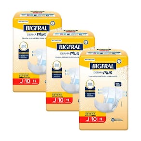 O Kit contém: 3 pacotes de Fraldas Geriátricas Bigfral Derma Plus Juvenil com 10un cada.