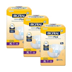 O Kit contém: 3 pacotes de Fraldas Geriátricas Bigfral Derma Plus XG com 7un cada.