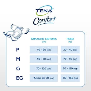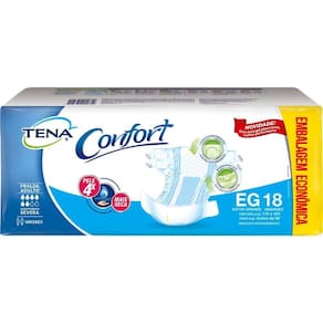 Kit 3 Fraldas Geriatricas Tena Confort EG 18un cada Fralda descartável de uso diurno/noturno, desenvolvida para garantir proteção com muito conforto, segurança contra vazamentos e cuidado com a pele. Indicado para incontinência urinária/fecal severa, pós-parto e pós-operatório. Possui camada AquiDry para absorver e distribuir rapidamente a urina, mantendo a pele 4x mais seca. - O Kit contém: 1 caixa com 3 pacotes de Fraldas Geriatricas Tena Confort EG com 18 unidades cada. - Tamanho Cintura: EG (Acima de 90 cm) - Peso: 110-165 kg * Compre produtos Tena