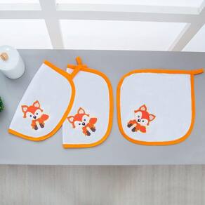 Kit 3 Fraldas Pano De Boca Malha Para Bebê Raposa Branco