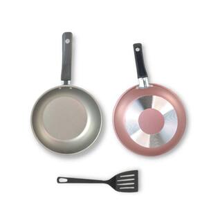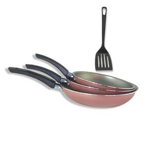 Kit 3 frigideiras grossa antiaderente teflon rosa Jogo de Frigideira Antiaderente Alumínio Forte Teflon 16cm, 18cm e 20cm 3 peças mais a espátula Prepare seus alimentos com rapidez e segurança. Essas frigideiras são feitas em alumínio grosso e tem revestimento interno e externo antiaderente Teflon, por isso os alimentos não grudam, não precisa de óleo, dessa maneira você tem um cozimento rápido e uniforme, e ainda fica muito mais fácil na hora da limpeza. O cabo em baquelite antitérmico proporciona maior firmeza e segurança no manuseio e ainda tem um furo passante para pendurar o produto. Pode ser utilizada no fogão a gás. Detalhes que fazem toda a diferença na sua cozinha. Especificações técnicas: Material: Alumínio Antiaderente - Teflon Cabo em baquelite antitérmico Cor: Rose Itens Inclusos: 3 Frigideiras - 16cm, 18cm e 20cm 1 Espátula Você Merece Beleza e Praticidade na sua Cozinha. Todos os nossos produtos são enviados em perfeito estado, e devidamente embalado, para chegar em sua casa pronto para ser utilizado. Aguardamos à sua compra Marca: Não Informado