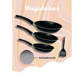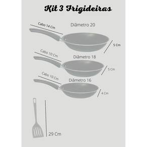 Jogo de Frigideira Antiaderente Alumínio Forte Teflon 16cm, 18cm e 20cm 3 peças mais a espátula