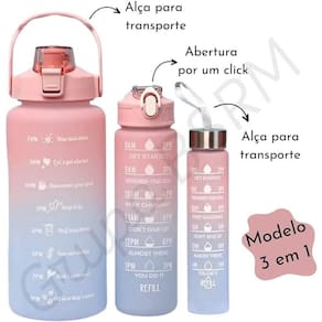 - 1 Kit Garrafa de Água Esportiva 2L + 700ml + 300ml Marcador de tempo A prova de vazamentos