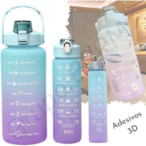 Estas garrafas de água de 2L e 700ml são projetadas com marcador de tempo e citações inspiradoras, ajudam você a se manter motivado a beber bastante água ao longo do dia. Perfeito para exercícios, corrida, caminhada, ciclismo, camping, ioga ou qualquer outro esporte em casa, na academia, no escritório ou ao ar livre. Com adesivos para personalização fazendo com que sua garrafa fique estilosa e bonita como tem que ser.
