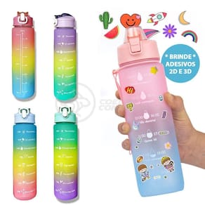 O destaque principal desse kit é a garrafa de 2 litros, que é o tamanho perfeito para te acompanhar ao longo do dia. Mas a surpresa não para por aí! Dentro dessa garrafa, você encontrará outra garrafa de 900ml, que também possui um visual incrível e frases motivacionais inspiradoras. E para completar o pacote, dentro da garrafa de 900ml, há uma garrafa menor de 350ml, proporcionando ainda mais praticidade e portabilidade.