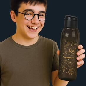 O Kit Contém: 3 Garrafas de Água Tupperware Eco Tupper Redonda Plus Harry Potter Preto com 750ml cada unidade.