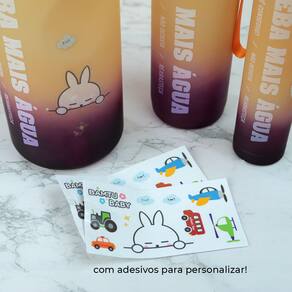 Com esse kit de garrafas você terá em mãos 3 opções de tamanhos: uma garrafa de 1,5litros, outra de 700ml e mais uma de 300ml. As garrafas são todas em tie dye colorido e acompanham adesivos para você personalizar e deixá-la ainda mais bonitas.