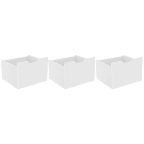 Kit 3 Gavetas Organizadoras Qmovi Branco. Kit 3 Gavetas Organizadoras, com impressão UV fosco somente nas cores amarelo, laranja e vermelho. A embalagem do produto é feita em um volume com papelão revestido por plástico e com bup\'s internos para garantir a qualidade do produto. Gavetas com fitas de feltro para não riscar o produto. Gavetas opcional para compor o produto Nicho Organizador Qmovi. Ean: 7898555510463