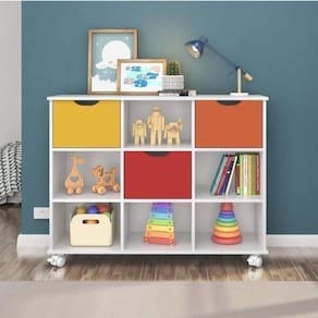 Kit 3 Gavetas Organizadoras Qmovi Colorido. Kit 3 Gavetas Organizadoras, com impressão UV fosco somente nas cores amarelo, laranja e vermelho. A embalagem do produto é feita em um volume com papelão revestido por plástico e com bup\'s internos para garantir a qualidade do produto. Gavetas com fitas de feltro para não riscar o produto. Gavetas opcional para compor o produto Nicho Organizador Qmovi. Ean: 7898555510470