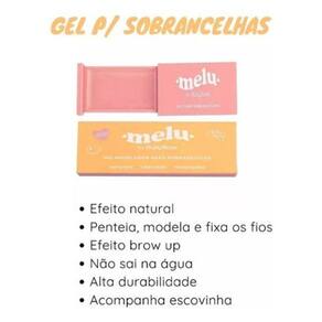 Como usar gel para sobrancelha: Antes de tudo molhe um pouquinho o pincel com água, assim fica mais fácil de passar no produto. Aplique o gel com ajuda da escovinha nas sobrancelhas no sentido do crescimento dos fios Marca: Melu - Ruby Rose Ean: 7791744155721