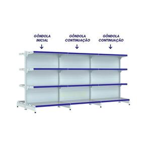 \nNosso kit com 3 gôndolas de centro na cor branca é ideal para armazenamento e exposição de produtos em supermercados, mercearias, farmácias, lojas de utilidades, materiais de construção, agropecuárias, e muito mais, variando de acordo com a capacidade de peso de cada modelo.com 1,37m de altura, esta gôndola proporciona uma exibição eficiente dos produtos, maximizando o espaço vertical da sua loja e permitindo uma organização prática e acessível.as gôndolas possuem uma capacidade de 40kg por bandeja. com pintura eletrostática epóxi, antibacteriana, uniforme e resistente.possui bandejas com inclinação em 3 posições e bandejas reguláveis na coluna a cada 25mm, o que permite adição de bandejas extras. a bandeja é construida em chapa 26 (espessura de 0,50mm). fundo da bandeja quadrado para melhor exposição.pés com regulagem de altura, colunas dupladas e tratamento especial da superfície.a gôndola é prática e fácil de montar, com sistema de encaixe sem utilização de parafusos. você pode instalar suas gôndolas rapidamente, sem complicações, permitindo que você comece a exibir seus produtos em pouco tempo.todas as nossas gôndolas possuem qualidade, resistência e durabilidade garantidas pelo uso de matérias-primas de alto padrão, processos produtivos com a mais atual tecnologia e um cuidado especial em cada etapa.modernas e elegantes, nossas gôndolas são projetadas para destacar seus produtos e criar um ambiente agradável de compras para seus clientes, incentivando a exploração e aumentando as vendas.aproveite ao máximo cada centímetro disponível em sua loja com nossas gôndolas projetadas para maximizar o espaço de exposição, permitindo uma ampla variedade de produtos em um layout eficiente.- capacidade de 40kg por bandeja;- colunas dupladas: com sistema de encaixe, sem utilização de parafusos;- tecnologia exclusiva de apoio sgl;- pés reforçados e com regulagem;- bandejas inclináveis: oferece 3 opções para melhor exposição;- bandejas reguláveis a cada 25mm: possibilidade de adicionar bandejas extras;- reforço na base e bandeja: para maior capacidade de carga e estabilidade;- bandeja é construida em chapa 26;- ponteira da coluna: maior proteção e durabilidade.*porta etiquetas: vendidos separadamente, em variadas opções de cores.> o kit contém- 01x gôndola new premium 1,37m branca centro inicial- 02x gôndola new premium 1,37m branca centro continuação> especificaçõesgôndola centro inicialmodelo: gôndola de centro iniciallinha: fit 40altura: 1,37mcor: brancaquantidade de bandeja: 8 (4 em cada lado)peso suportado por bandeja: 40kgchapa: 26gôndola centro continuaçãomodelo: gôndola de centro continuaçãolinha: fit 40altura: 1,37mcor: brancaquantidade de bandeja: 8 (4 em cada lado)peso suportado por bandeja: 40kgchapa: 26> medidas do produtogôndola centro inicialaltura: 1,37mlargura: 0,96mpeso: 28kglargura da bandeja: 0,90mprofundidade da bandeja base: 0,40mprofundidade das bandejas superiores: 0,30mgôndola centro continuaçãoaltura: 1,37mlargura: 0,93mpeso: 23kglargura da bandeja: 0,90mprofundidade da bandeja base: 0,40mprofundidade das bandejas superiores: 0,30m> garantia- 6 meses> troca e devoluçãomediante termos da política de trocas e devoluções da empresa.