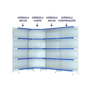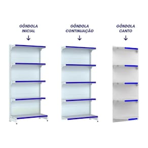 Nosso kit com 3 gôndolas de parede + canto na cor branca é ideal para armazenamento e exposição de produtos em supermercados, mercearias, farmácias, lojas de utilidades, materiais de construção, agropecuárias, e muito mais, variando de acordo com a capacidade de peso de cada modelo.com 2,02m de altura, esta gôndola proporciona uma exibição eficiente dos produtos, maximizando o espaço vertical da sua loja e permitindo uma organização prática e acessível.as gôndolas possuem uma capacidade de 40kg por bandeja. com pintura eletrostática epóxi, antibacteriana, uniforme e resistente.possui bandejas com inclinação em 3 posições e bandejas reguláveis na coluna a cada 25mm, o que permite adição de bandejas extras. a bandeja é construida em chapa 26 (espessura de 0,50mm). fundo da bandeja quadrado para melhor exposição.pés com regulagem de altura, colunas dupladas e tratamento especial da superfície.a gôndola é prática e fácil de montar, com sistema de encaixe sem utilização de parafusos. você pode instalar suas gôndolas rapidamente, sem complicações, permitindo que você comece a exibir seus produtos em pouco tempo.todas as nossas gôndolas possuem qualidade, resistência e durabilidade garantidas pelo uso de matérias-primas de alto padrão, processos produtivos com a mais atual tecnologia e um cuidado especial em cada etapa.modernas e elegantes, nossas gôndolas são projetadas para destacar seus produtos e criar um ambiente agradável de compras para seus clientes, incentivando a exploração e aumentando as vendas.aproveite ao máximo cada centímetro disponível em sua loja com nossas gôndolas projetadas para maximizar o espaço de exposição, permitindo uma ampla variedade de produtos em um layout eficiente.- capacidade de 40kg por bandeja;- colunas dupladas: com sistema de encaixe, sem utilização de parafusos;- tecnologia exclusiva de apoio sgl;- pés reforçados e com regulagem;- bandejas inclináveis: oferece 3 opções para melhor exposição;- bandejas reguláveis a cada 25mm: possibilidade de adicionar bandejas extras;- reforço na base e bandeja: para maior capacidade de carga e estabilidade;- bandeja é construida em chapa 26;- ponteira da coluna: maior proteção e durabilidade.> o kit contém- 01x gôndola new premium 2,02m branca canto- 02x gôndola new premium 2,02m branca parede inicial- 01x gôndola new premium 2,02m branca parede continuação> especificaçõesgôndola cantomodelo: gôndola cantolinha: fit 40altura: 2,02mcor: brancaquantidade de bandeja: 5peso suportado por bandeja: 40kgchapa: 26gôndola parede inicialmodelo: gôndola de parede iniciallinha: fit 40altura: 2,02mcor: brancaquantidade de bandeja: 5peso suportado por bandeja: 40kgchapa: 26gôndola parede continuaçãomodelo: gôndola de parede continuaçãolinha: fit 40altura: 2,02mcor: brancaquantidade de bandeja: 5peso suportado por bandeja: 40kgchapa: 26> medidas do produtogôndola cantoaltura: 2,02mlargura: 0,69mpeso: 13kglargura da bandeja: 0,69mprofundidade da bandeja base: 0,40mprofundidade das bandejas superiores: 0,30mgôndola parede inicialaltura: 2,02mlargura: 0,96mpeso: 26kglargura da bandeja: 0,90mprofundidade da bandeja base: 0,40mprofundidade das bandejas superiores: 0,30mgôndola parede continuaçãoaltura: 2,02mlargura: 0,93mpeso: 20kglargura da bandeja: 0,90mprofundidade da bandeja base: 0,40mprofundidade das bandejas superiores: 0,30m> garantia- 6 meses> troca e devoluçãomediante termos da política de trocas e devoluções da empresa.