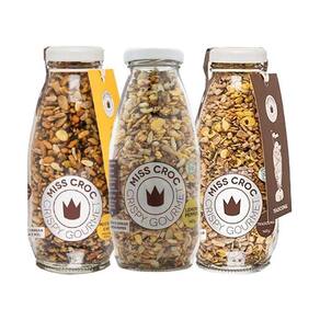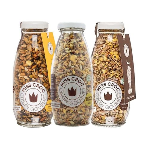 Kit 3 Granolas Crisp Garrafa Miss Croc: Lemon Pepper, Mostarda e , Tradicional Kit 3 Granolas Crisp Garrafa Miss Croc: Lemon Pepper, Mostarda e , Tradicional 1 unidade: Crisp Lemon Pepper Sem Glúten Garrafa Miss Croc 130g 1 unidade: Crisp Mostarda e Sem Glúten Garrafa Miss Croc 120g 1 unidade: Crisp Tradicional Sem Glúten Garrafa Miss Croc 140g Sobre a Boomi: A Boomi é um mercado online com produtos saudáveis e sustentáveis, que fazem bem à saúde e ao planeta. São mais de 1.800 produtos de 100 pequenas marcas para você Nascemos pequenos, mas com um propósito gigante: conectar pessoas a produtos acessíveis que tragam benefícios para a saúde, para o planeta e para a sociedade. Para isso, buscamos ofertar produtos de pequenos agricultores e pequenas empresas em um mundo cada vez mais veloz e que busca mais produtividade. Vamos sempre buscar levar o melhor para você Nosso propósito é conectar alimentos saudáveis e produtos naturais e sustentáveis a pessoas preocupadas com a sua saúde e com a saúde do planeta. Com preço justo, comodidade e informações confiáveis. Curadoria: Nossos produtos são criteriosamente validados pela nossa curadoria de produtos saudáveis, que busca produtores e empresas que compartilham do nosso alto padrão de qualidade. Da enorme lista de ingredientes banidos à preocupação do bem estar animal, desde o primeiro dia seguimos fieis aos nossos valores, trabalhando com transparência e práticas sustentáveis. Vendemos apenas produtos que admiramos e que nos orgulha. Marca: Não Informado