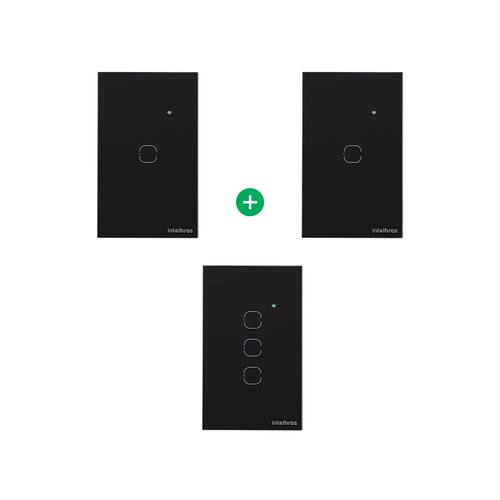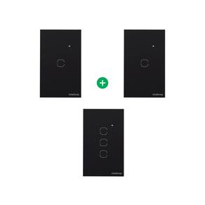 Kit 3 Interruptores Touch Inteligentes de 1 e 3 Teclas Preto