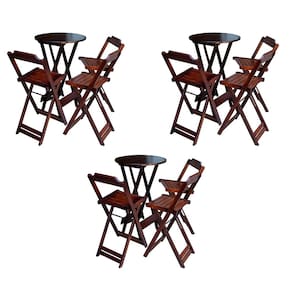 Kit 3 Jogos De Mesa Bistrô De Madeira Dobrável Com 3 Banquetas - Imbuia Feito em madeira maciça, tornando resistentes e duráveis. Seu design permite que seja encaixado em qualquer ambiente, trazendo um toque a mais para seu estabelecimento. É ideal para bares, restaurantes, estabelecimentos, áreas de lazer e também para sua casa. Feito em madeira maciça, tornando resistentes e duráveis. Seu design permite que seja encaixado em qualquer ambiente, trazendo um toque a mais para seu estabelecimento. Além de sua durabilidade, o que lhe trará conforto para servir seus clientes. Por ser dobrável torna-se mais fácil guardar, manusear e limpar o produto.