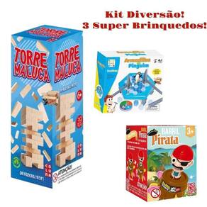 Kit 3 jogos torre maluca + barril pirata + pinguim numa fria Agradecemos por sua visita em nosso anuncio marca: pais e filhos Kit brinquedos pedagógicos jogo torre maluca + barril pirata + pinguim numa fria - pais e filhos Contem: 01 kit com 03 brinquedos pedagógicos: 01 jogo torre maluca feito em madeira + 01 pula pirata tamanho p + pinguim numa fria tamanho p torre maluca em madeira : A torre maluca é um jogo clássico que prende a atenção, de estratégia e movimentos precisos onde te força a ser muito cuidadoso... Pois qualquer movimento errado, toda a torre estará no chão Muito divertido pra jogar em família e com os amigos. O objetivo do jogo é tirar o máximo de peças sem deixar a torre cair. Quem retirar uma peça e derrubar a torre, perde. Monte sua torre, retire as peças e empilhe-as no topo. Cuidado para ela não cair. Um ótimo brinquedo para entreter, divertir e auxiliar no desenvolvimento da criança. A melhor forma da criança aprender é brincando Reúna seus amigos para uma partida de torre maluca e mostre que você é super habilidoso Um ótimo brinquedo para entreter, divertir e auxiliar no desenvolvimento da criança. A melhor forma da criança aprender é brincando Características do produto: - medidas da embalagem: axlxp - 27 x 8 x 8 cm - medidas do brinquedo: axlxp - 26 x 8 x 8 cm - peso da embalagem: 780g - material das peças: mdf - certificado Idade mínima: 6 anos Jogadores: 2 Barril pirata tamanho p Tamanhos pequeno: 10x4,5cm Jogo pinguim numa fria tamanho p Descubra a diversão e a emoção do jogo de mesa pinguim numa fria, uma experiência única que promete entreter crianças a partir de 6 anos. Este jogo é ideal para duas pessoas, promovendo a interação e a competição saudável entre amigos ou familiares. Com componentes de plástico duráveis, o jogo inclui um pinguim, uma roleta, uma base, quatro pés, duas picaretas e 24 blocos, garantindo horas de diversão. O objetivo do jogo é testar a destreza dos jogadores enquanto tentam equilibrar o pinguim em uma base instável. A roleta adiciona um elemento de surpresa, tornando cada partida única e cheia de desafios. É uma excelente opção para desenvolver habilidades motoras e estratégicas em crianças, ao mesmo tempo que proporciona momentos de alegria e risadas. Com um design envolvente e fácil de entender, pinguim numa fria é perfeito para festas de aniversário, encontros familiares ou tardes de jogos. Dimensões da peça: 11 x 11 x 4cm Material: Plástico polipropileno Cor: colorido Composição do produto: 1 base 4 pés 2 martelos 1 pinguim 38 gelos: : 90 dias do fabricante Homologação Inmetro: ABCP-BRI-0098-2021-08 Marca: Não Informado
