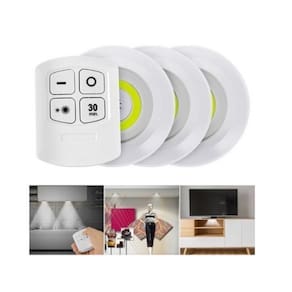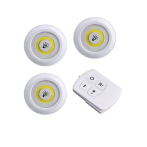 - 150lumens de brilho ultra potente; - Controle duplo; - Desligamento automático em 30 minutos; - Controle com alcance de 4 metros; - Instalação fácil e sem fio; - Funciona com 3 pilhas AAA (não inclusas); - Tamanho: lâmpadas - 9cm de diâmetro/ Controle - 7,5cm de altura x 6cm de largura.