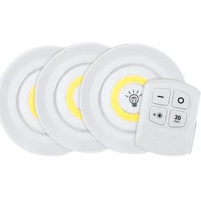 Controle de 2 vias: O controle remoto IR permite que você ajuste o brilho em 2 níveis e controle de tempo para desligar a luz em 30 minutos sem fio a uma distância de até 4 metros*. Você também pode ligar / desligar a luz do disco, tocando no interruptor na lente das luzes.