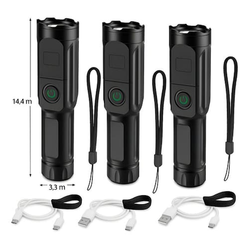 Kit com 3 Lanternas LED Recarregáveis USB – Segurança e Potência Triplicada!