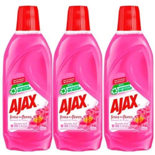 Kit 3 Limpador Diluível Ajax Festa Das Flores Bouquet De Flores 500Ml