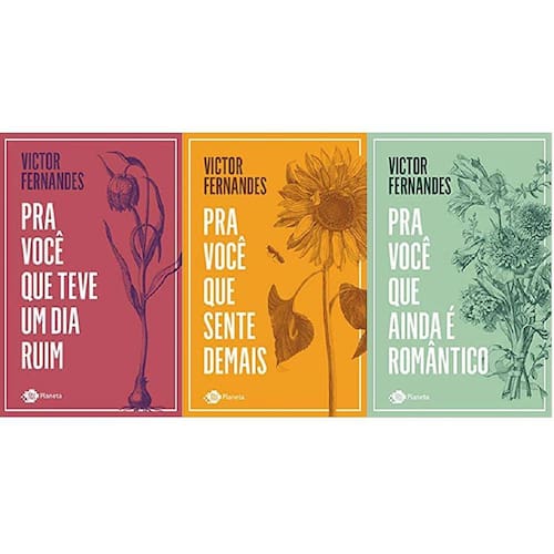 Kit 3 livros victor fernandes pra você que teve um dia ruim + que sente demais + que ainda é romântico Todos os livros sao novos, narração poesia, capa comum normal brochura Pra você que teve um dia ruim Capa comum - 28 janeiro 2019Edição português por victor fernandes autor Detalhes do produtoEditora : outro planeta; 1 edição 28 janeiro 2019 Idioma : portuguêsCapa comum : 192 páginasIsbn-10 : 8542215273Isbn-13 : 978-8542215274Dimensões : 20.8 x 13.6 x 1 cmCondição do Item: NovoTipo de Narração: Manual Este livro é para todas as pessoas que precisam de um abraço, de uma dose de afeto, de luz, de amor. Para todas as pessoas que precisam voltar a acreditar que vai ficar tudo bem. Não vai ter mágica. Não vai ter um clique onde tudo vai passar de uma maneira brusca. Não vão ter soluções caindo do céu. A única solução mágica que eu conheço é continuar seguindo em frente apesar de tudo. Continuar vivendo, enfrentando, caminhando mesmo cambaleando e tropeçando e sentindo dor. É preciso se permitir seguir em frente. Permitir-se levantar e continuar. Parar de se achar fraco. Você não é fraco, você só está passando por dias ruins, por momentos dolorosos, por algumas situações incômodas. Você está longe de ser fraco. Olhe quantas coisas você superou, quantas coisas você precisou enfrentar e conseguiu dar a volta por cima. Eu sei que é difícil, mas a única coisa que posso te dizer agora é que vai passar. O resto é o tempo quem diz. E, sim, vai passar. Vai, sim. Você sabe Pra você que sente demais Capa comum - 10 maio 2020Edição português por victor fernandes autor Detalhes do produtoEditora : outro planeta; 1 edição 10 maio 2020 Idioma : portuguêsCapa comum : 176 páginasIsbn-10 : 8542219171Isbn-13 : 978-8542219173Dimensões : 21 x 13.8 x 1.2 cmCondição do Item: NovoTipo de Narração: Manual Devagarinho você vai perceber seu coração se acalmando, a vida organizando, as soluções surgindo. Calma, tá você lembra daquela vez em que olhou para as coisas ruins acontecendo e achou que sua vida se resumiria a dor e lágrimas você lembra daquela vez em que olhou para o tamanho das dificuldades e se sentiu menor que elas você lembra daquela vez em que ia dormir quase todos os dias pedindo a deus um pouco mais de força você percebe que tudo isso passou você percebe o tanto que aprendeu você tem noção de como sua vida mudou pra melhor de lá pra cá desta vez não vai ser diferente... Você sempre supera. Pra você que ainda é romântico Capa comum - 12 agosto 2021Edição português por victor fernandes autor detalhes do produtoEditora : outro planeta; 1 edição 12 agosto 2021 Idioma : portuguêsCapa comum : 176 páginasIsbn-10 : 6555354178Isbn-13 : 978-6555354171Dimensões : 14 x 1.7 x 21 cmCondição do Item: NovoTipo de Narração: Manual Sabe, eu poderia ter ficado mais frio e perdido essa minha habilidade de ver beleza nas coisas simples e emitir calor através do meu coração. A vida poderia ter me endurecido. Eu poderia ter perdido as cores bonitas que existem em mim. Não seria surpreendente se eu ficasse mais fechado, menos amigável, mais difícil de conviver. Pô, eu tinha motivos suficientes para isso. Juro que ninguém estranharia se me visse assim. As decepções poderiam ter me colocado dentro de uma concha, poderiam ter feito com que eu criasse uma muralha da china, ao meu redor, poderiam ter tirado a minha fé na vida, no amor, nas possibilidades de sorrir e de ser feliz. Elas teriam força para tal façanha. Mas não conseguiram. Não conseguiram porque algo dentro de mim sempre me sacode e me faz proteger com unhas e dentes as partes bonitas que moram em meu ser. Tem alguma força mágica e inexplicável que me faz acordar, depois de dias de tempestade, disposto a ser melhor, e não a ser pior.