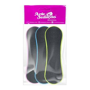 A lixa para pés produzida em EVA Soft, traz leveza e agilidade ao processo de lixamento, seja em casa ou no salão. Seu formato anatômico garante firmeza e precisão no manuseio, que proporciona facilidade e praticidade ao ato de lixar os pés. Possui dois lados, um mais fino e outro mais grosso, indicados para o tratamento de rachaduras, fissuras e calosidades nos pés. Contém 3 unidades.