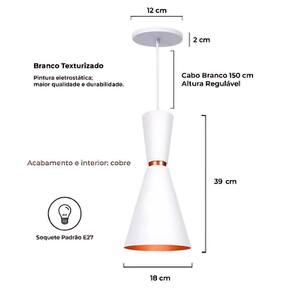 - Adicione um toque contemporâneo e elegante à sua decoração com o Lustre Pendente Cone Moderno.