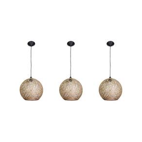 Kit com 3 luminária rústica de teto artesanal fibra natural 18 cm Luminária rústica de teto artesanal fibra natural 18 cm