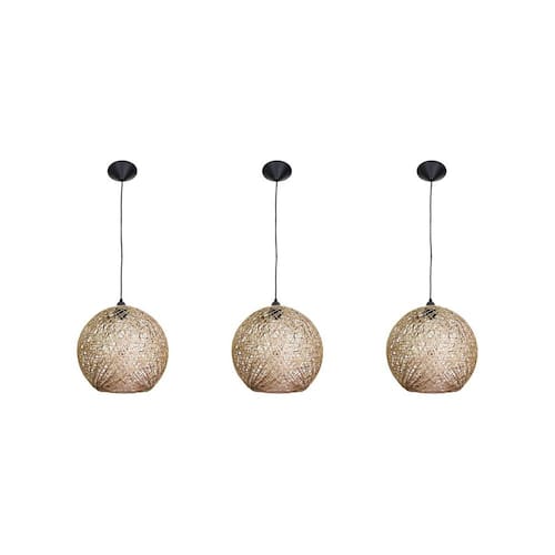 Kit com 3 luminária rústica de teto artesanal fibra natural 18 cm Luminária rústica de teto artesanal fibra natural 18 cm
