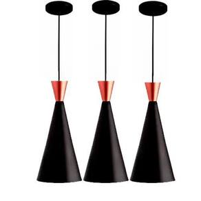 Lustre Pendente Modelo: New City Cor: Preto Com interior Cobre Medidas Aproximadas: Altura: 30 cm Diâmetro: 17 cm Canópla de teto: 12 cm Soquete e-27 plástico Material: alumínio Marca R.R.J.V Negócios O pendente acompanha 1 Um Metro de fio com altura ajustável. Marca: Não Informado Ean: 7893428139833