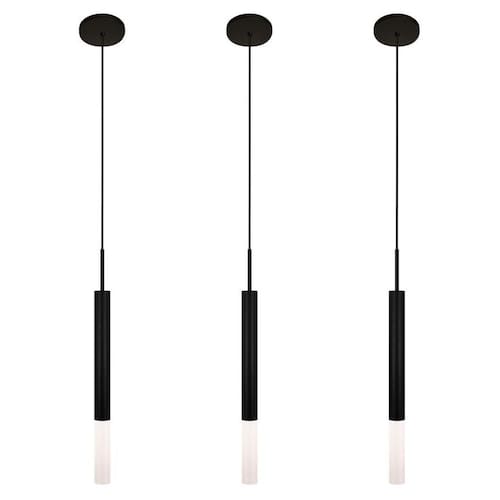Kit 3 Luminárias Teto Pendente Tubo Difusor Balcão Preto