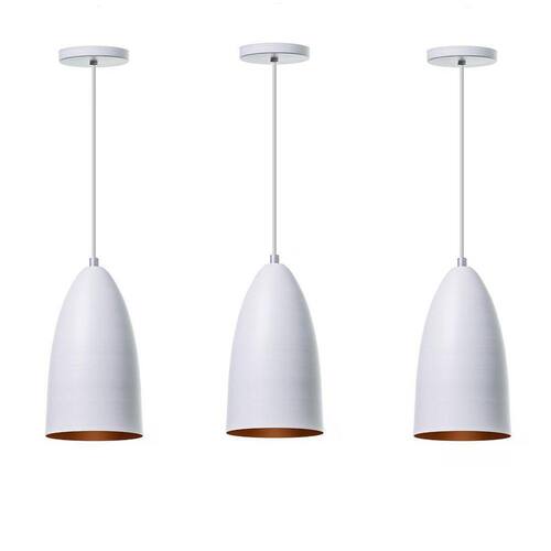 Kit 3 Lustre Pendente Bala M Branco Alumínio Decoração - pendente modelo bala - dimensões: 22x13cm - canopla redonda de 11cm de diâmetro - produto feito em alumínio - 150cm de fio - pronto para instalação - utilize a lâmpada que desejar - soquete e-27 - garantia de 6 meses contra defeitos de fabricação - lâmpadas não inclusas neste produto.