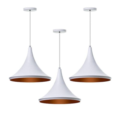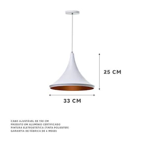 Kit 3 Lustre Pendente Chapéu Chinês 33Cm Branco Alumínio - dimensões: 25x33cm - canopla redonda de 11cm de diâmetro - produto feito em alumínio - 150cm de fio ajustável - pronto para instalação - utilize a lâmpada que desejar - soquete e-27 - garantia de 6 meses contra defeitos de fabricação - lâmpadas não inclusas neste produto.