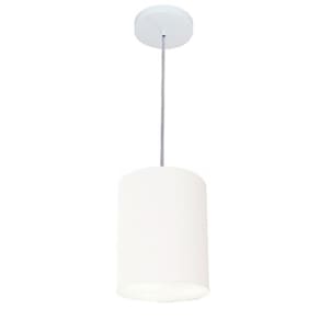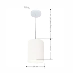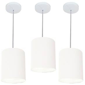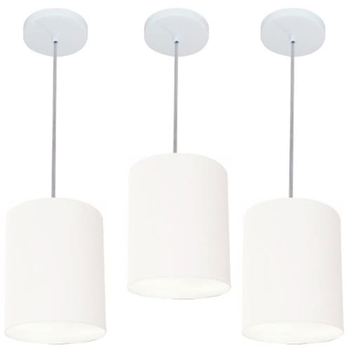 Kit-3 Lustre Pendente Cilíndrico Md-4012 Cúpula Tecido 18x25cm Branco