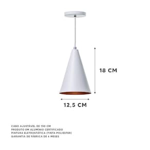 Kit 3 Lustre Pendente Cone P Branco Alumínio Decoração - dimensões: 18x12,5cm - canopla redonda de 11cm de diâmetro - produto feito em alumínio - 150cm de fio ajustável - pronto para instalação - utilize a lâmpada que desejar - soquete e-27 - de 6 meses contra defeitos de fabricação - lâmpadas não inclusas neste produto. Marca: Não Informado