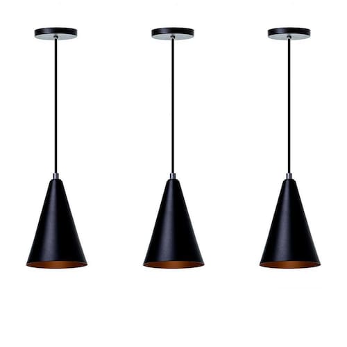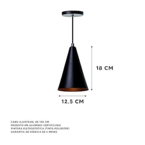 Kit 3 Lustre Pendente Cone P Preto Alumínio Decoração- Pendente modelo cone- dimensões: 18x12,5cm- canopla redonda de 11cm de diâmetro- produto feito em alumínio- 150cm de fio ajustável- pronto para instalação- utilize a lâmpada que desejar - soquete e-27- garantia de 6 meses contra defeitos de fabricação- lâmpadas não inclusas neste produto.