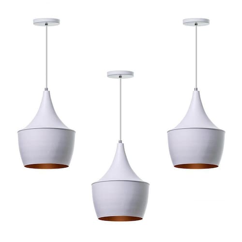 Kit Com 3 Lustre Pendente Interno Balão Branco Com Cobre