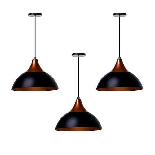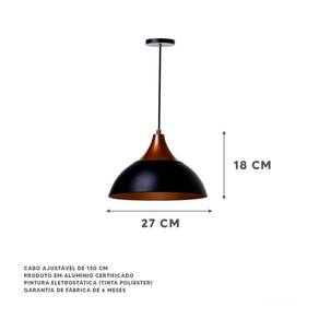 Kit 3 Lustre Pendente Panamá Preto Topo Cobre Alumínio - dimensões: 18x27cm - canopla redonda de 11cm de diâmetro - produto feito em alumínio - 150cm de fio ajustável - pronto para instalação - utilize a lâmpada que desejar - soquete e-27 - garantia de 6 meses contra defeitos de fabricação - lâmpadas não inclusas neste produto.