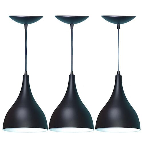 Luminária Pendente Gota, fabricada em alumínio, material altamente resistente ao tempo. Luminária composta por cabo PP com 1 metro de comprimento (tamanho ajustável), soquete E-27, canopla e cúpula em alumínio. Luminária ideal para ambientes internos, utilizada em salas de estar, cozinhas, salas de jantar, área gourmet entre outras. Ilumine e decore o seu lar com nossas lindas luminárias. Deixe a imaginação tomar conta. Lindo pendente para quem gosta de um ambiente com estilo e bem iluminado. Material - Alumínio (não enferruja) Medidas - 15 cm diâmetro x 18 cm altura mais 1.00 m de cabo Altura aproximada montada de 1,18 m - Altura Ajustável Soquete - E-27 (aplicável com lâmpada comum ou LED) Luminária Bivolt - (127/220 v) Não acompanha - Lâmpada Cor Externa - Preta Fosca Cor Interna - Branca Garantia - 3 meses de garantia contra defeitos de fabricação.