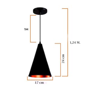 Kit 3 Lustres Pendente Cone em Alumínio Preto Fosco e Cobre