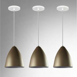 Kit 3 Lustres Pendentes Estilo Vegas Vintage Dourado com Branco Kit 3 Pendentes Vegas Dourado/Branco RRJV NEGOCIOS Lustre Pendente Modelo: Vegas Cor: Dourado Com Interior Branco Medidas Aproximadas: Altura: 18 cm Diâmetro: 15 cm Canópla de teto: 12 cm Soquete e-27 plástico Material: alumínio Marca R.R.J.V Negócios O pendente acompanha 1 Um Metro de fio com altura ajustável. Marca: Rrjv Negocios Ean: 7898736880361